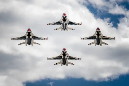 Истребитель F-16C Fighting Falcon, принадлежащий элитной демонстрационной эскадрилье ВВС США «Тандербердс» (Thunderbirds), разбился в среду в пустынном районе Южной Калифорнии. Военные подтвердили, что пилот смог благополучно катапультироваться за несколько минут до столкновения с землей.
