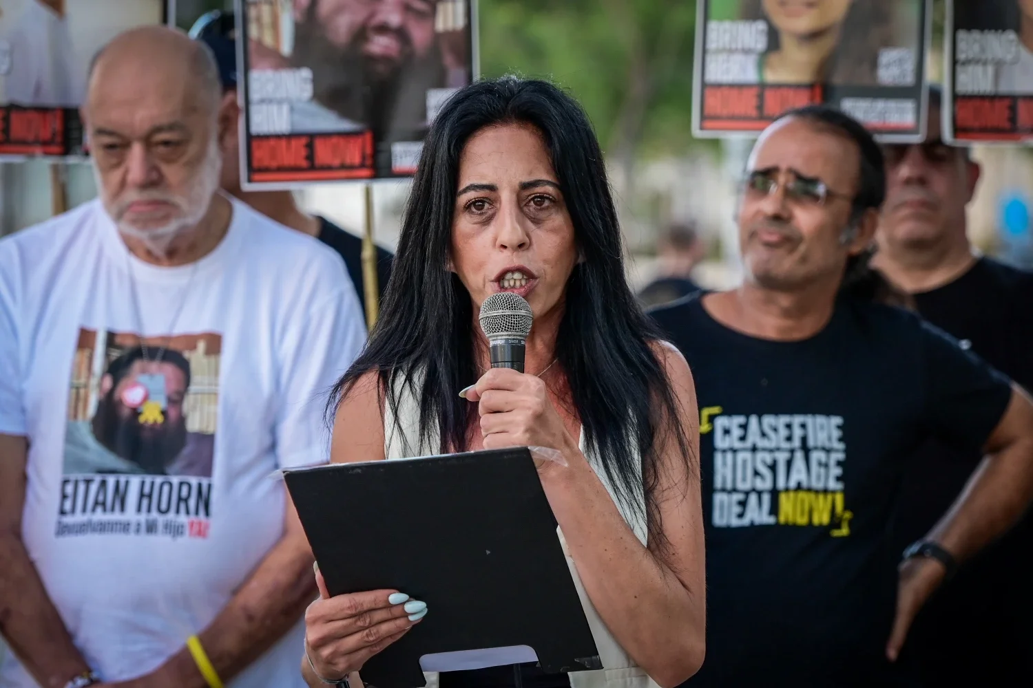 В субботу, перед началом демонстраций по всему Израилю, родители заложников сделали традиционное заявление для прессы. Они требуют от правительство немедленно подписать “частичную” сделку на условиях, принятых ХАМАСом, прекратить войну и начать переговоры об освобождении остальных заложников. Нетанияху, между тем, стал настаивать на возвращении всех заложников сразу, как только ХАМАС принял прежнее требование Израиля - частичную сделку с временным прекращением огня (на частичной сделке, следует напомнить, настаивал именно премьер-министр Нетанияху).