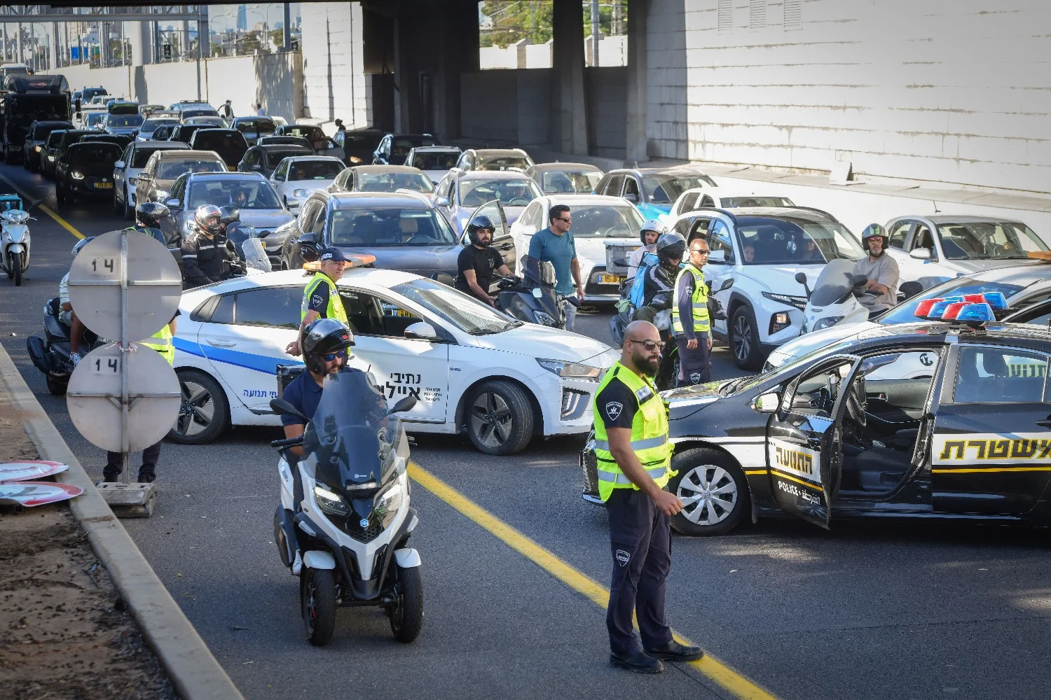 В пятницу вечером полиция перекрыла движение по трассе Аялон в обоих направлениях от развязки Кибуц Галуйот до выезда на 1 шоссе. Причина - мужчина, угрожающий прыгнуть вниз с моста А-Агана.
