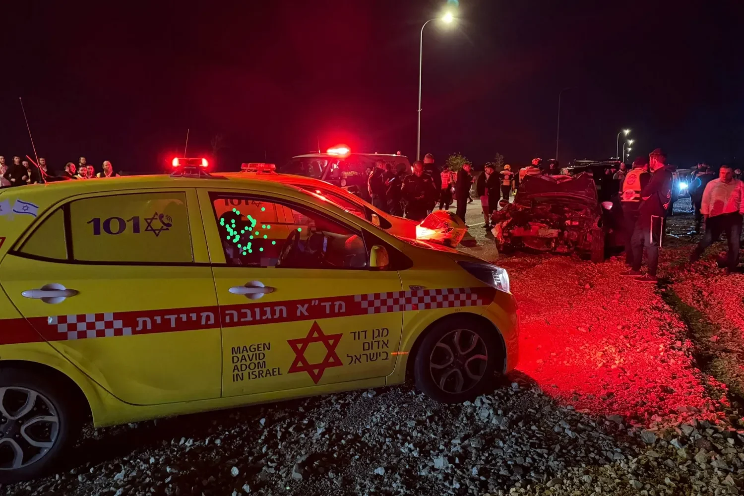 Фельдшеры МАДА рассказали: “Когда мы прибыли на место происшествия, мы увидели, что это очень серьезная авария. Столкнулись два автомобиля, оба были сильно повреждены. Из одного из автомобилей был извлечен молодой человек, около 18 лет, с серьезными травмами. Он был без сознания, в критическом состоянии. Из другого автомобиля был извлечен молодой человек, около 25 лет, в сознании, с травмами живота и конечностей, и молодая женщина, около 25 лет, в состоянии средней тяжести. Кроме того, в автомобиле находился ребенок, около 3 лет, в состоянии средней тяжести с травмой головы, и младенец, около 1 года, в легком состоянии. После оказания первой помощи на месте мы эвакуировали их в больницу”.