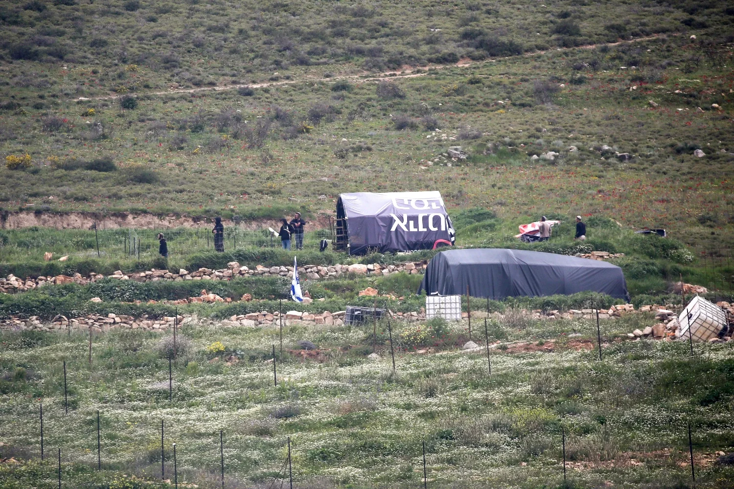 פלסטינים מסייעים לפצועים בנוכחות ישראלים בתקרית שבה נהרג יהודה שרמן בגדה, שלשום