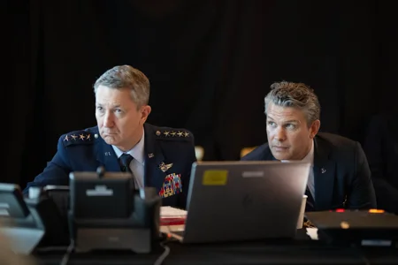 Рядом с Дэном Кейном глава Пентагона Пит Хегсет обвинил Иран в «пиратстве» и «терроризме» и пригрозил Тегерану «еще более жестокими бомбардировками, если соглашение о прекращении огня рухнет».